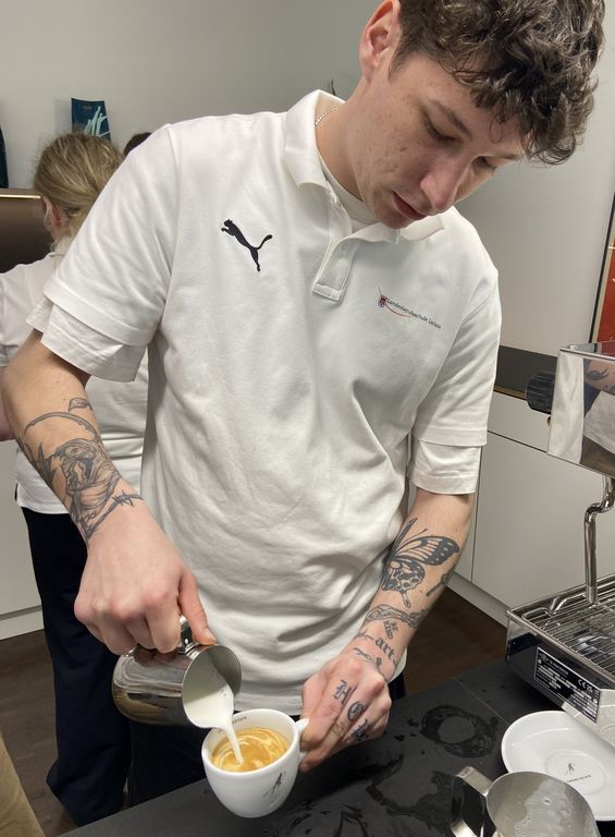 Gemeinsam mit Christina von Amann Kaffee übten wir das richtige Milchaufschäumen und zauberten schließlich den perfekte Cappuccino!