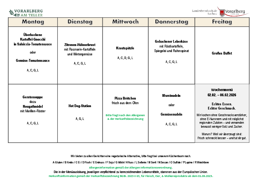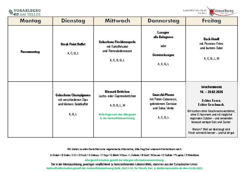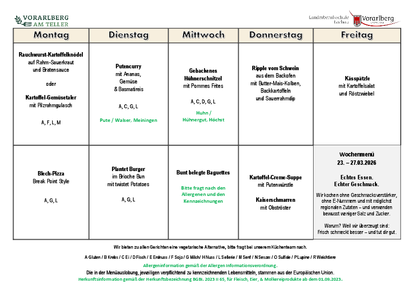 Internat/Menüplan